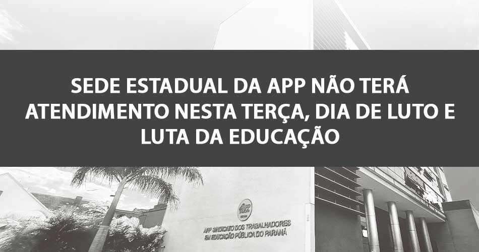 Em função da mobilização do 30 de agosto, não haverá expediente na sede estadual da APP. Assim, o atendimento estará suspenso, presencial e por telefone.