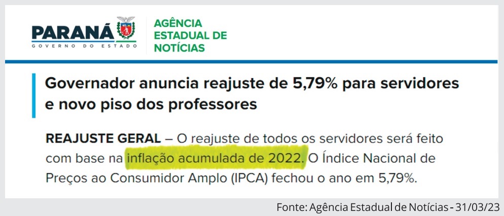 A principal incerteza diz respeito à provável inclusão, na composição dos 5,79%, do percentual de 3,39% devido pelo Estado como residual da Data-Base de 2016. A categoria deve estar em alerta para pressionar os(as) deputados(as) pela exclusão deste índice, garantindo que o reajuste de 5,79% corresponda exclusivamente à inflação acumulada de 2022, conforme noticiado pelo próprio governo em março.