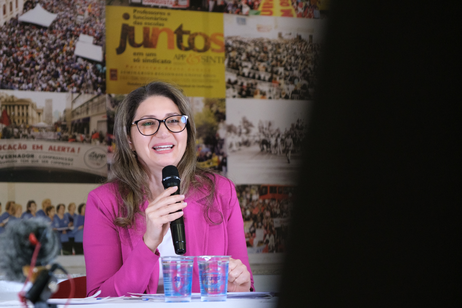 “Reforço a importância de estarmos sempre conectados e antenados nas notícias e nos chamados para a luta que são veiculadas pela APP. Estamos trabalhando para fazer uma comunicação ágil e certeira pois como educadores e educadoras temos compromisso com a qualidade da informação”, disse Cláudia Gruber, secretária de Comunicação da APP.