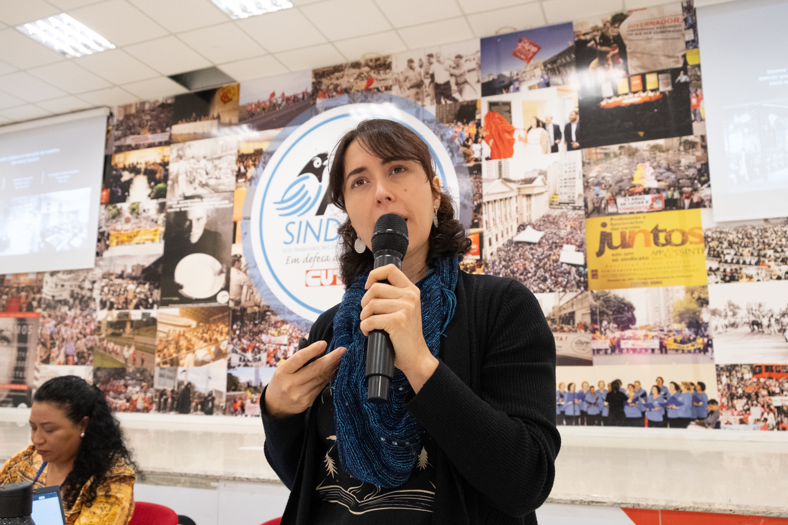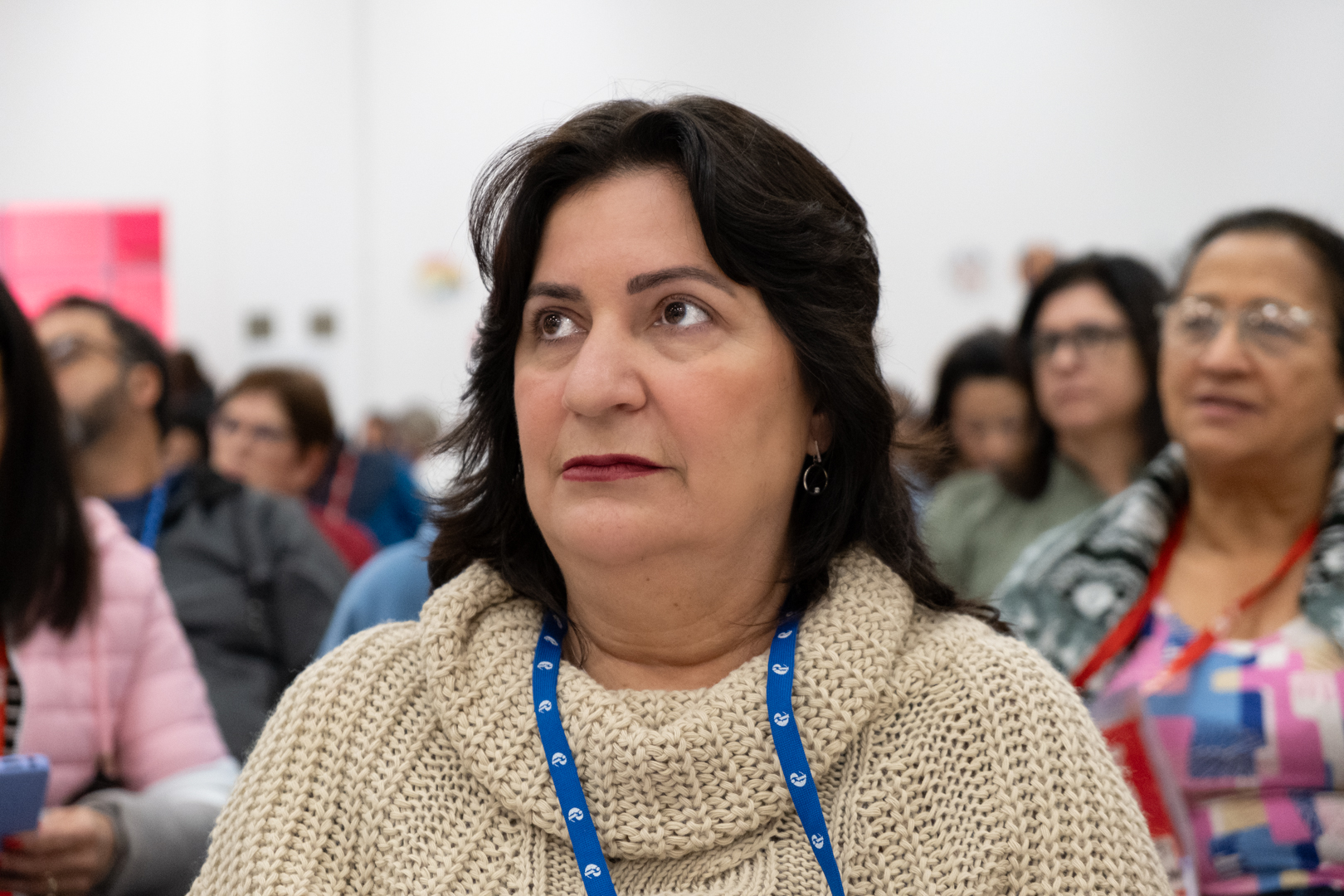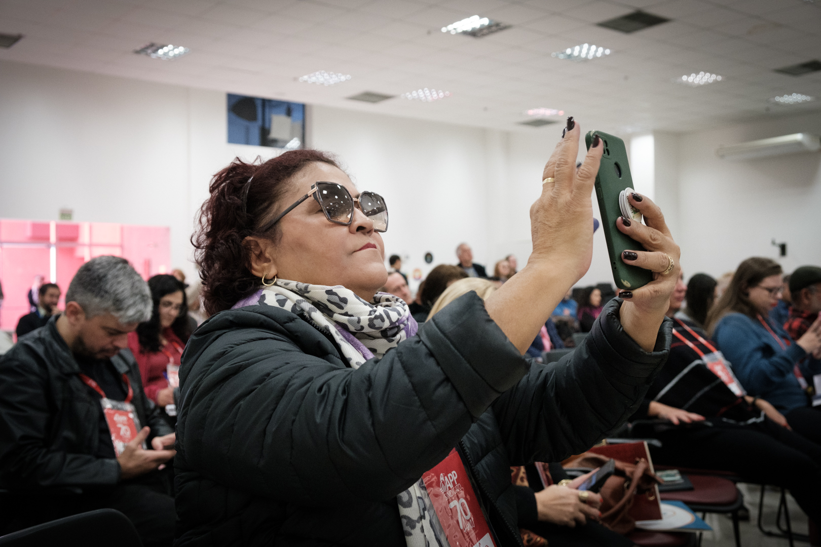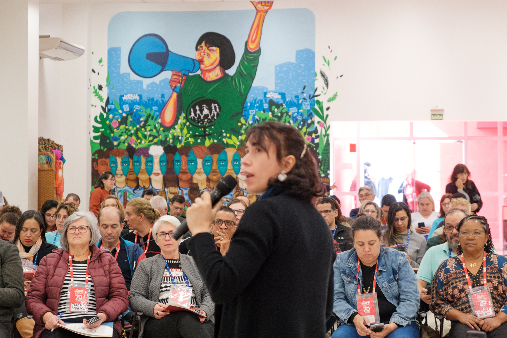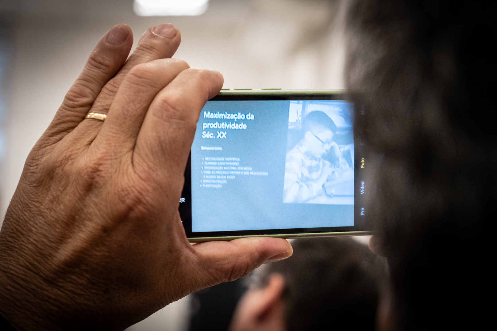 “Se não é possível acabar com as plataformas, o que nós vamos fazer com elas? Como transformá-las em instrumentos de apoio pedagógico, e não de imposição e de captura da educação pública por atores privados? Como organizamos a nossa vida na escola e a nossa resistência, mas também a disputa deste espaço?”, questionou Walkiria Mazeto antes da formação dos grupos.