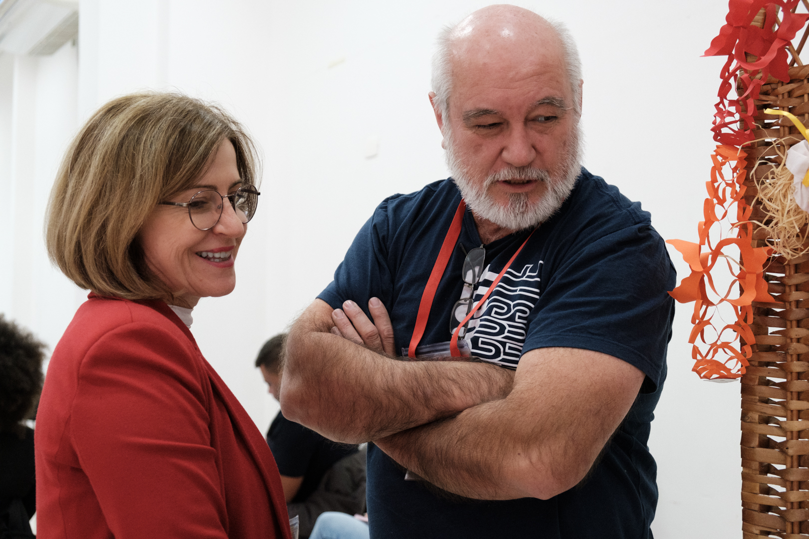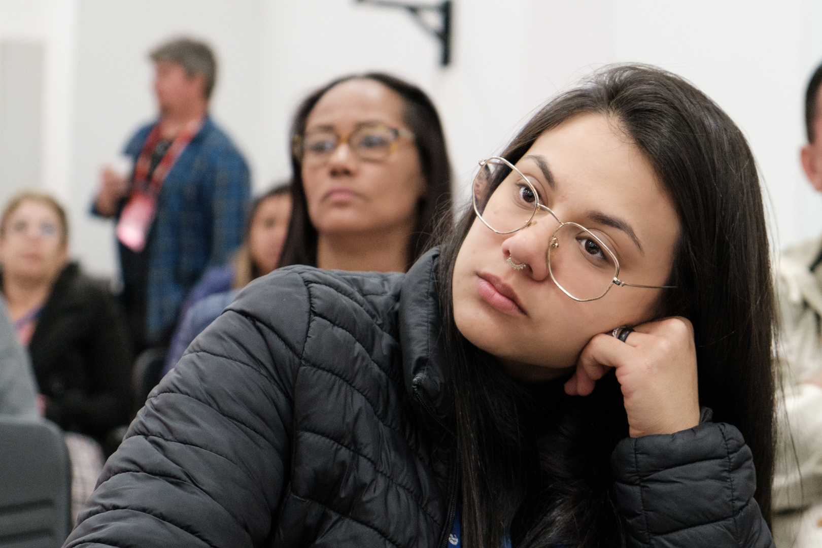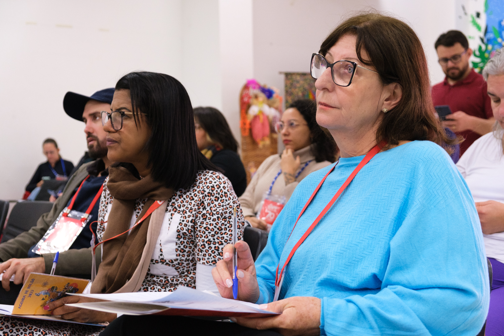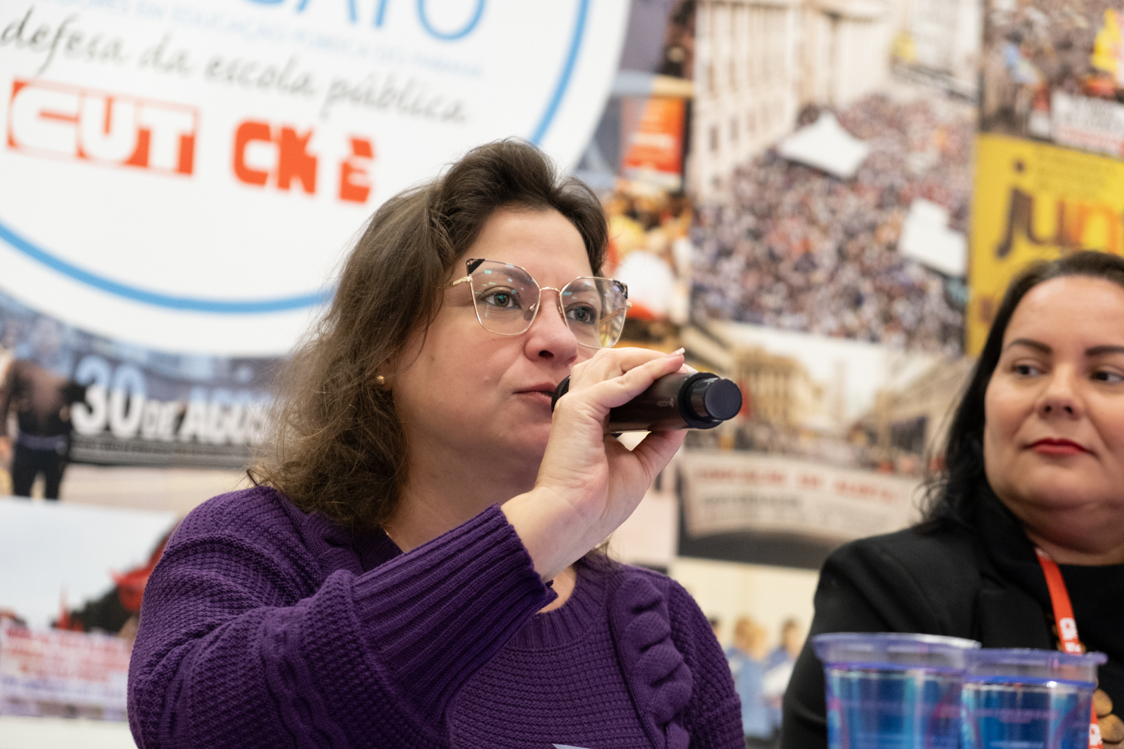 “Se não é possível acabar com as plataformas, o que nós vamos fazer com elas? Como transformá-las em instrumentos de apoio pedagógico, e não de imposição e de captura da educação pública por atores privados? Como organizamos a nossa vida na escola e a nossa resistência, mas também a disputa deste espaço?”, questionou Walkiria Mazeto antes da formação dos grupos.
