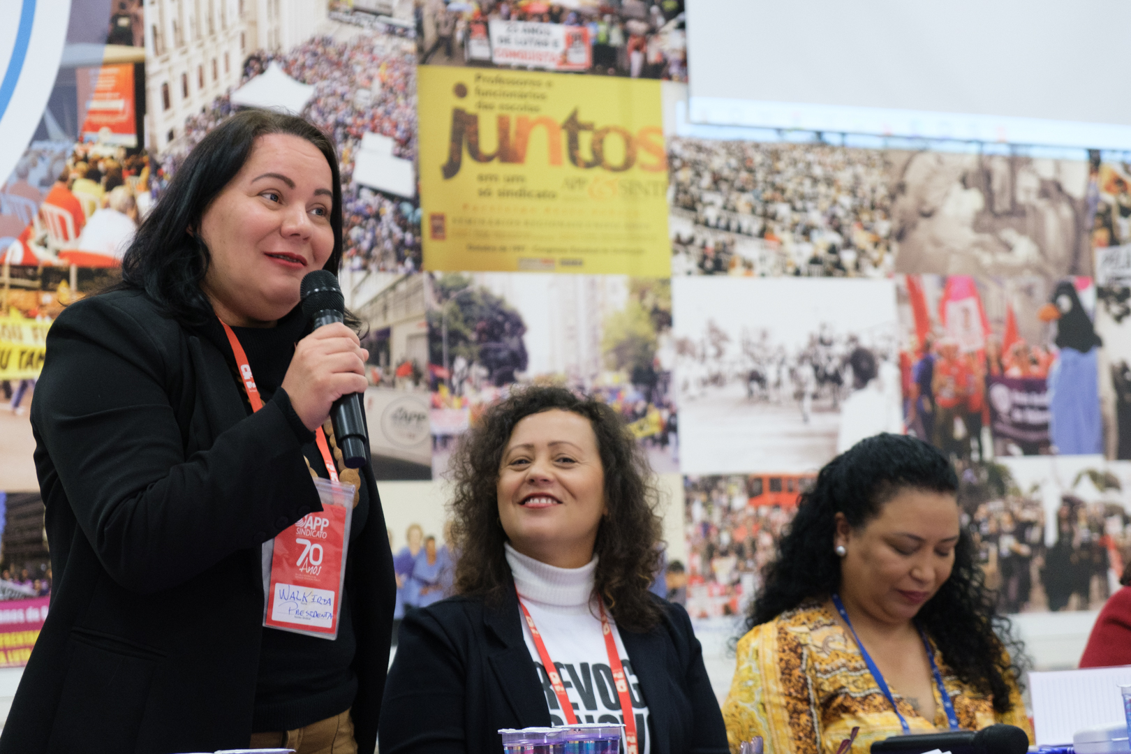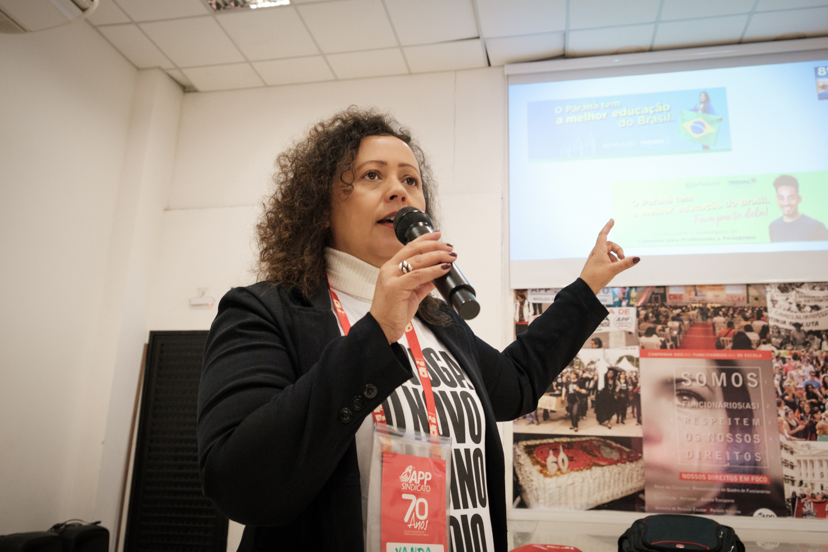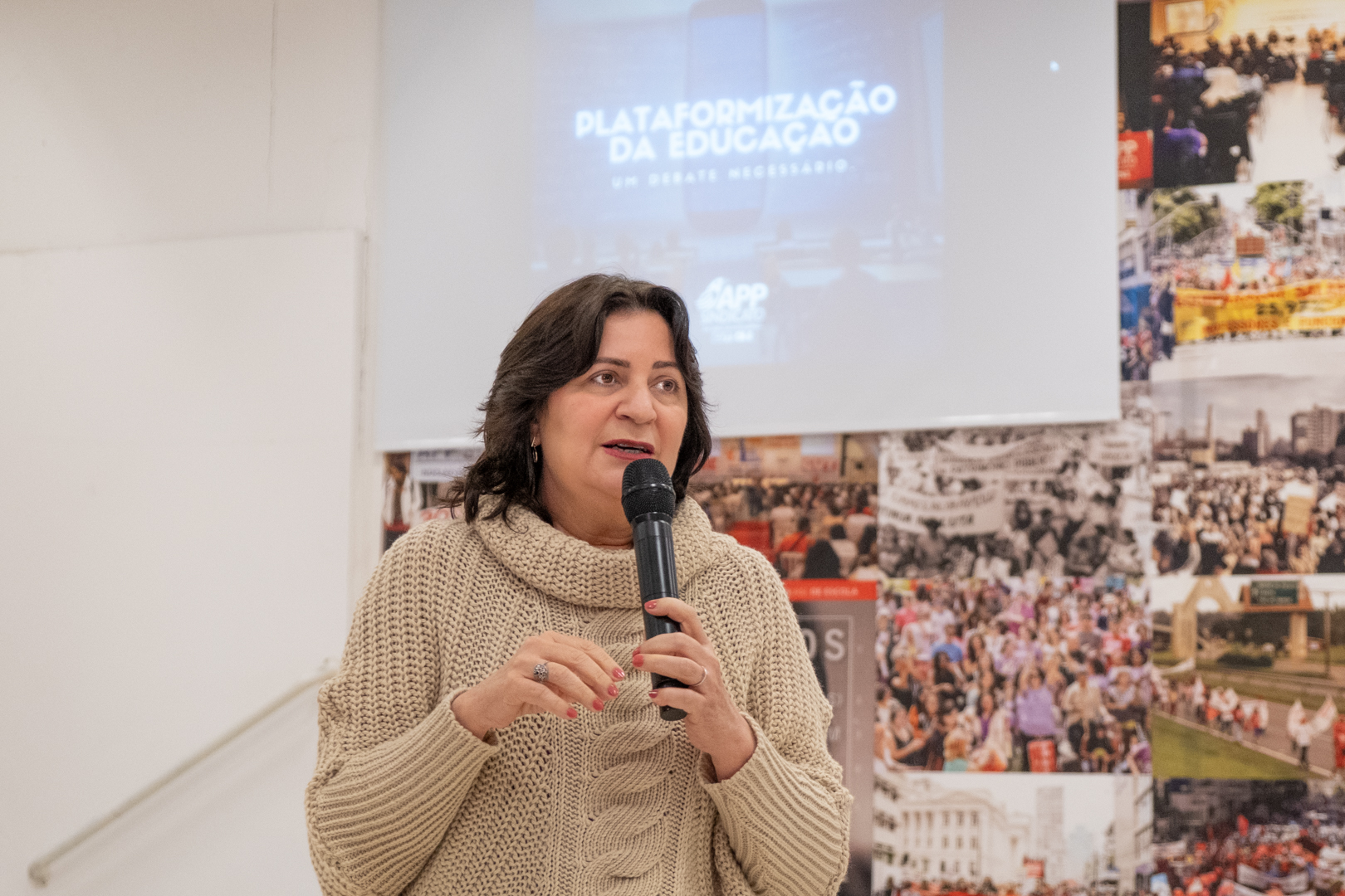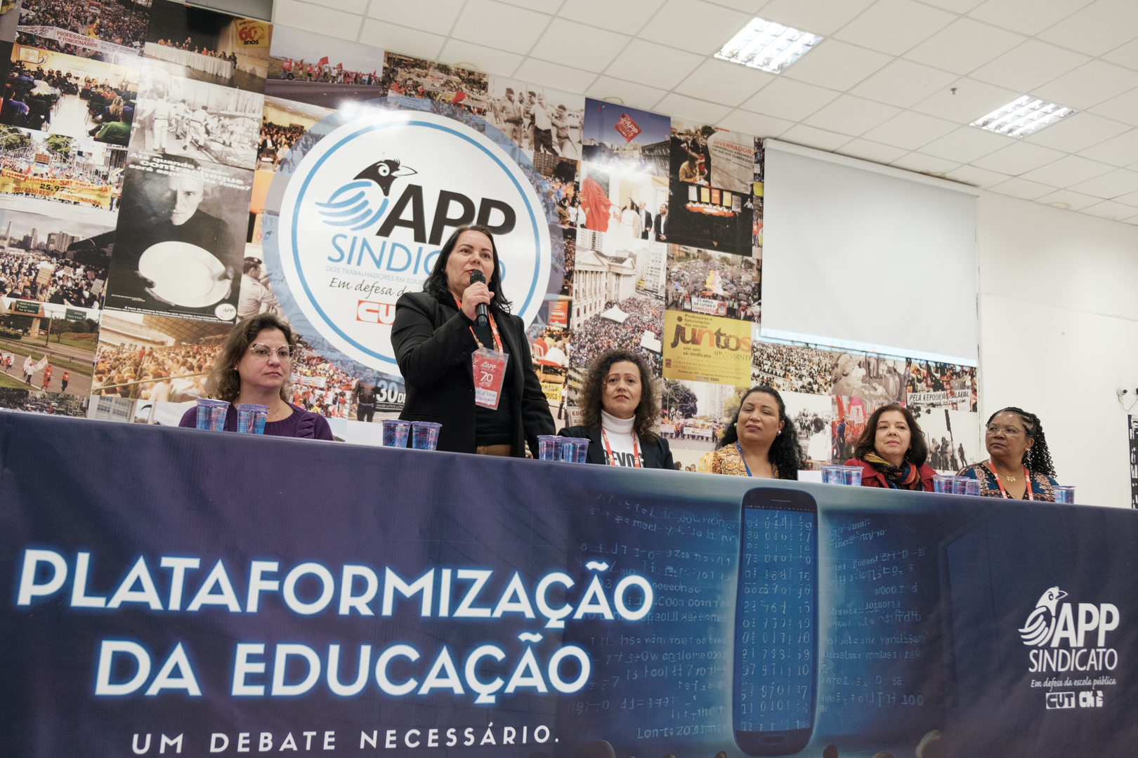 “Na nossa perspectiva, a educação é um processo de desenvolvimento de todas as potencialidades dos estudantes”, afirma Vanda Santana, secretária Educacional da APP-Sindicato. “Para os gestores e para o mercado, a concepção de educação é baseada na meritocracia e na concorrência. Nesse contexto, a padronização do currículo e o controle do desempenho de educadores e estudantes é fundamental para mensurar a competitividade. A plataformização cumpre esse papel nas nossas escolas”, completa.