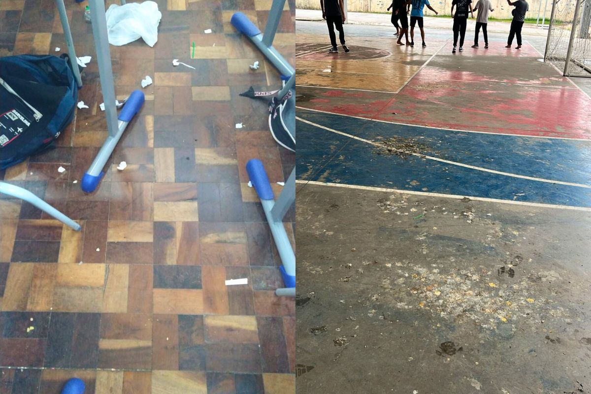 A responsável afirma que mantém contato frequente com outras mães e estudantes e também está preocupada com a sujeira na quadra esportiva da escola. Segundo os relatos e imagens feitas pelos próprios estudantes, fezes de pombo se acumulam por dias no local. O receio é de que a situação possa ocasionar a transmissão de doenças. “Ano passado era maravilhoso, mas neste ano meu neto sentiu muito pelas mudanças”, relata.