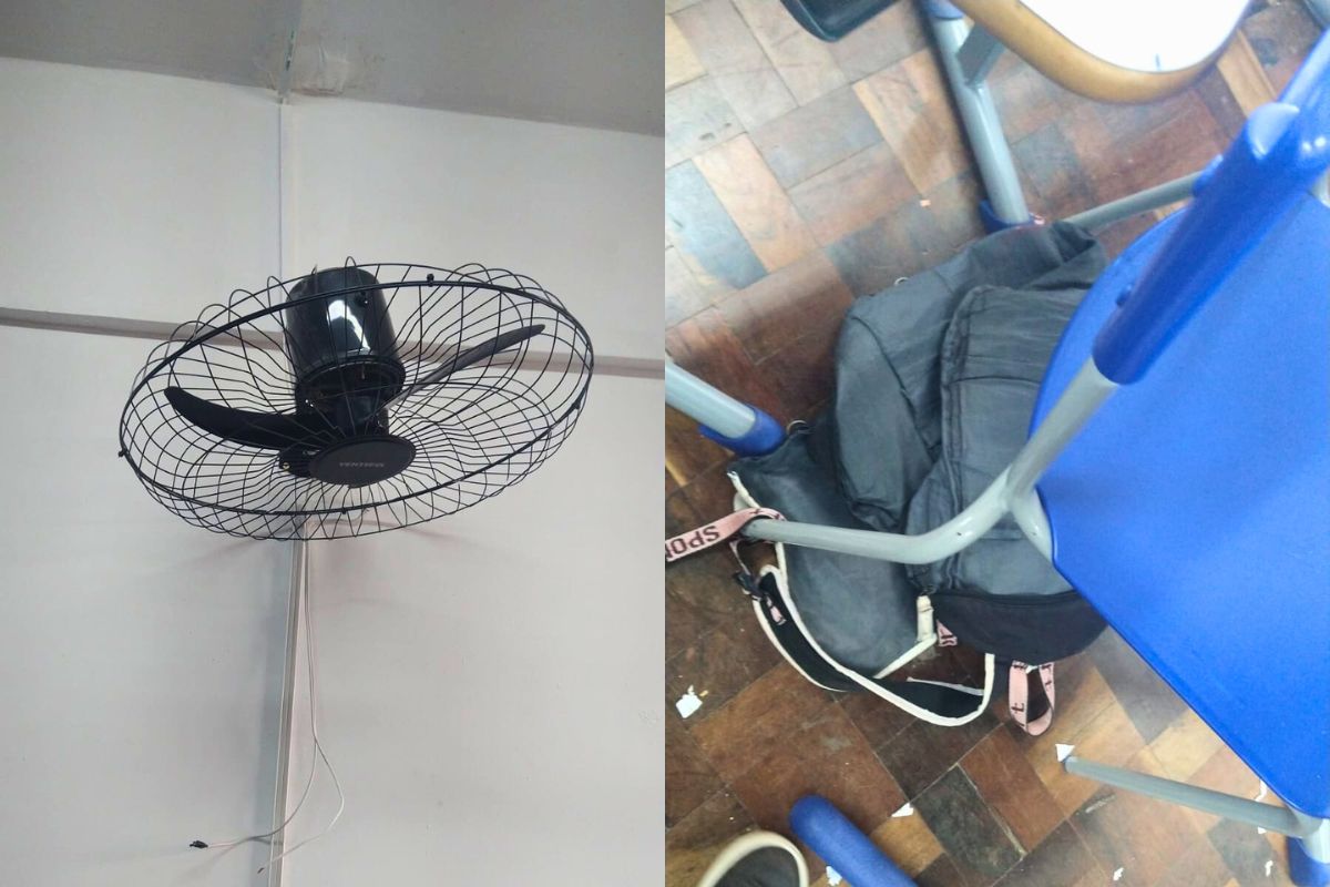 “Um professor me ligou contando que ele entrou na sala para dar aula, mas encontrou a sala toda suja. Ele disse que deu uma bronca nos estudantes, mas foi informado de que a sala já estava suja há dias. Segundo ele, os alunos apontaram para uma mochila rasgada jogada no chão, há dias no mesmo lugar, e que o único ventilador do ambiente também estava estragado”, relata a secretária Geral do Núcleo Sindical Curitiba Norte da APP-Sindicato, professora Márcia Amaral Pontes de Lima.