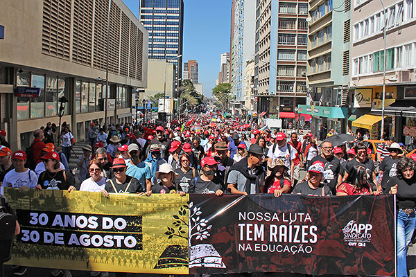 Educadores(as) de todo o estado se reuniram nesta quinta-feira (30), em Curitiba, em um dia de luto e luta pela educação pública do Paraná. A paralisação tomou as ruas da capital para recordar os 30 anos da violência cometida pelo governo Álvaro Dias, em 30 de agosto de 1988, o massacre do governador Beto Richa […]