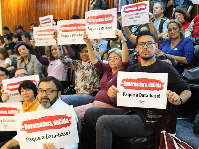 A política salarial dos dois últimos governos estaduais seguiu os modelos de (des)valorização do funcionalismo proposto pelo governo Michel Temer (MDB). Professores(as) e funcionários(as) de escola tiveram, no Paraná, os seus salários congelados nas gestões de Beto Richa (PSDB) e Cida Borghetti (PP). No total, são três anos sem o pagamento da data-base – o […]