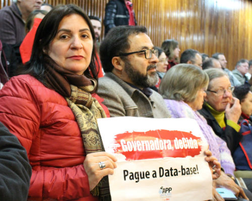 Terminou em confusão a sessão desta terça-feira (10) na Assembleia Legislativa do Paraná (Alep) após a decisão da governadora Cida Borghetti que retirou de tramitação o projeto de lei da data-base do funcionalismo do Poder Executivo. Além de continuar dando calote no rendimento dos(as) servidores(as), a decisão do governo contraria as promessas de diálogo e […]