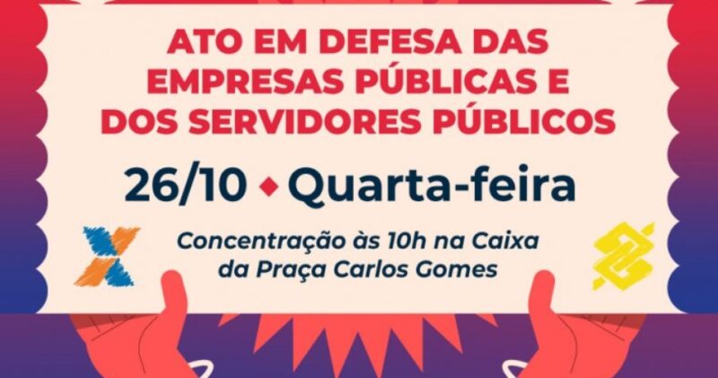 O Fórum das Entidades Sindicais está convocando servidoras(es) do Paraná a participar de uma manifestação em defesa do funcionalismo público do Estado e das empresas públicas nesta quarta-feira, 26 de outubro. O ato acontece em Curitiba, com concentração na Praça Carlos Gomes (Centro) a partir das 9h30. A caminhada tem saída às 10 horas da […]