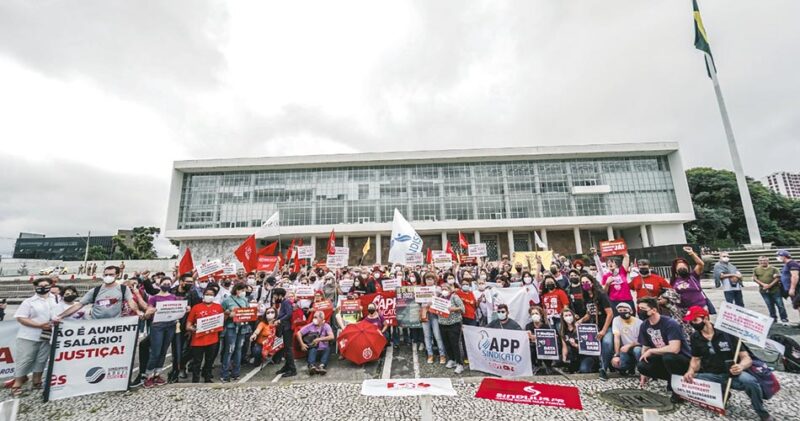 O clima chuvoso e a postura autoritária do governo Ratinho – que determinou a retirada do caminhão de som antes do ato – não intimidaram a manifestação dos(as) servidores(as) na manhã desta quarta-feira (16), em Curitiba. Educadores(as) de diversas regiões do Paraná somaram forças com colegas de outras categorias do Estado para exigir respeito, direitos […]