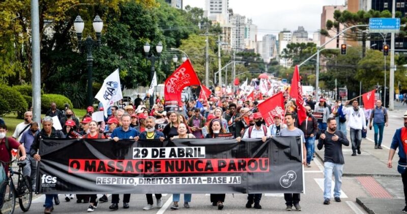 >> Quer receber notícias da APP por Whatsapp ou Telegram? Clique aqui! O grito reprimido na garganta dos(as) servidores(as) do Paraná foi libertado nas ruas e nas redes neste 29 de abril. Educadores(as) paralisaram suas atividades em escolas de todo o Paraná e uma multidão tomou as ruas da capital. Dezenas de atos descentralizados também […]