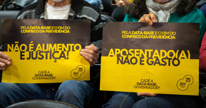 >> Quer receber notícias da APP no whatsapp ou telegram? Clique aqui! Isentar servidores (as) aposentados(as) da contribuição previdenciária até o teto do INSS (R$ 7.087,32) representaria uma renúncia fiscal de R$ 350 milhões, cerca de 2% dos R$ 17 bilhões que o governo Ratinho Jr concede em incentivos fiscais a grandes empresas neste ano. […]