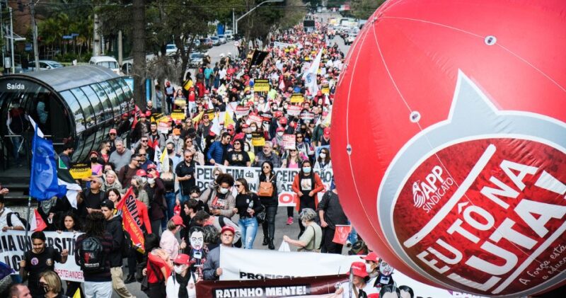 >> Receba notícias da APP no seu Whatsapp ou Telegram A educação não pode mais esperar. Com perdas acumuladas para a inflação que devem chegar a 42% em maio deste ano, piso desatualizado e aposentados(as) amargando um brutal desconto previdenciário, professores(as) e funcionários(as) de escola de todo o Paraná deram um recado em alto e […]