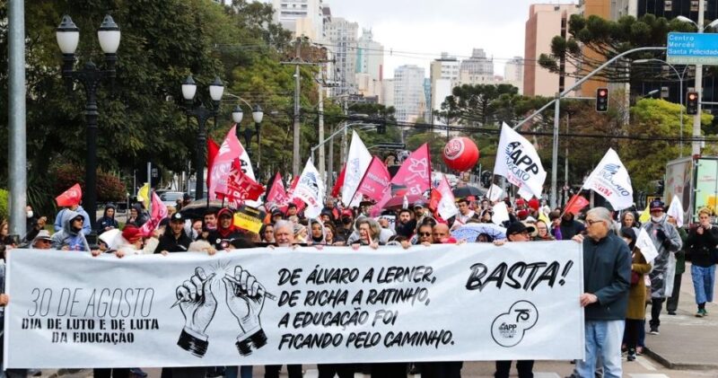 A Assembleia Estadual da APP-Sindicato do último sábado (20) aprovou PARALISAÇÃO da educação e ATO ESTADUAL em Curitiba no 30 de Agosto, data que marca 34 anos do massacre protagonizado por Álvaro Dias em 1988. O ato terá concentração às 8h30, na Praça 19 de Dezembro. À memória, marcada anualmente por greves da categoria, somam-se […]