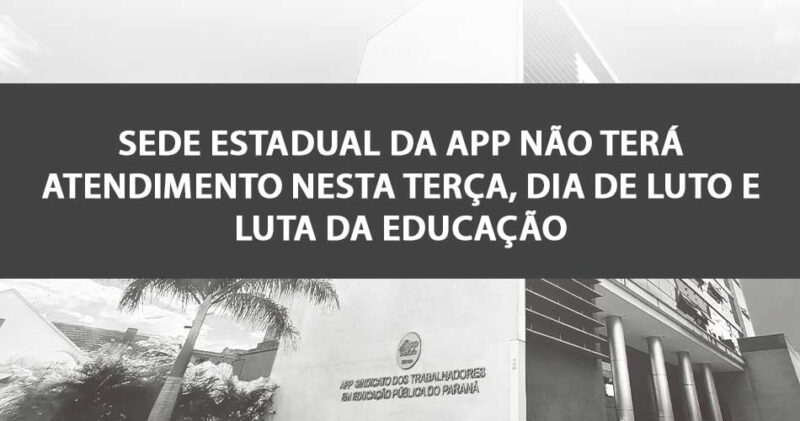 Sede estadual da APP não terá atendimento nesta terça, dia de luto e luta da educação