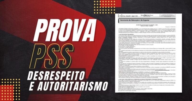 > Quer receber notícias da APP por whatsapp ou telegram? Clique aqui! Em franco desrespeito à representação da categoria e aos mais de 20 mil PSS que atuam na rede, a Secretaria da Educação publicou no Diário Oficial desta sexta-feira (3) o edital nº 30/2022, que consolida a realização de nova prova PSS. > Clique […]