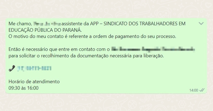 Alerta de golpe: mensagens falsas no Whatsapp miram sindicalizados(as) da APP