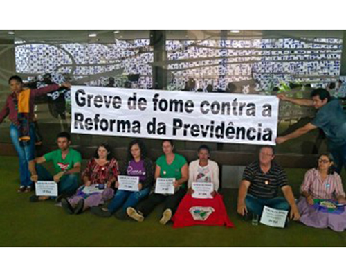 A greve de fome dos trabalhadores rurais iniciada na última terça-feira (5) contra a proposta de Reforma da Previdência do governo Temer entra no sétimo dia nesta segunda-feira (11), com reforços, dada a adesão de Rosangela Piovizani e Rosa Jobi, ambas do Movimento de Mulheres Camponesas (MMC). Além das camponesas Leila Denise, Josi Costa, e do Frei Sérgio Görgen, que fazem […]
