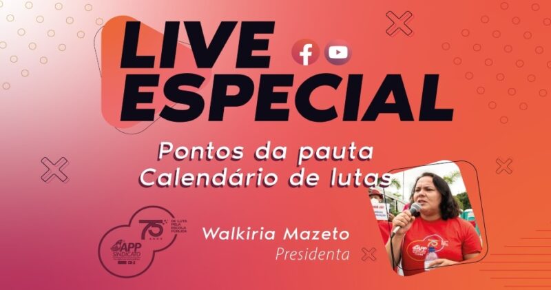 Em live na tarde desta terça-feira (20), a presidenta da APP-Sindicato, Walkíria Olegário Mazeto, relembrou alguns pontos da pauta da categoria, informou sobre as atuais movimentações do Sindicato e reforçou a necessidade de mobilização no próximo período. >> Quer receber notícias da APP no Whatsapp ou Telegram? Clique aqui! Após fazer um panorama sobre a […]
