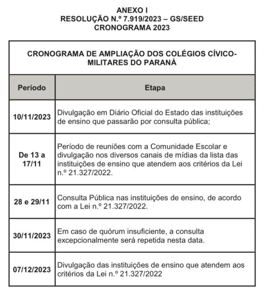 A contar da próxima segunda-feira (13), a comunidade escolar do Paraná tem 15 dias para salvar a educação pública de uma tragédia. O governo de Ratinho Jr. quer militarizar 127 escolas estaduais em duas semanas.
