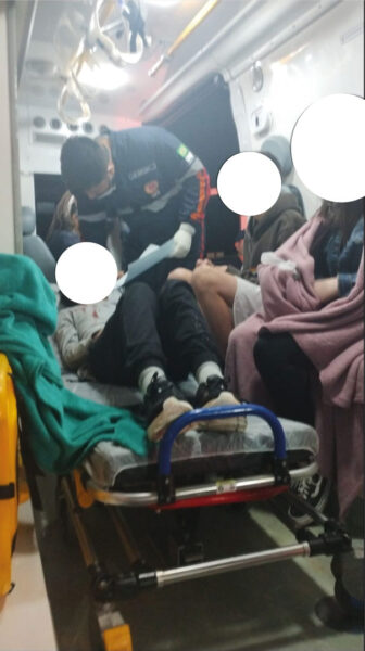 A batida deixou adolescentes feridos(as). Um estudante teria desmaiado após o impacto e todos foram prontamente atendidos pelo Samu. Graças à perícia do motorista, os ferimentos registrados são superficiais, mas as consequências da irresponsabilidade golpista poderiam ser muito mais graves.