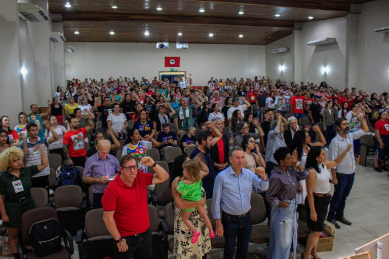 Mais de 400 pessoas lotaram o anfiteatro Arnaldo Busato, da Universidade Estadual do Oeste do Paraná (Unioeste), em Cascavel, na noite do dia 15 de novembro, durante a abertura do VIII Encontro Estadual dos Educadores e Educadoras da Reforma Agrária do Paraná.